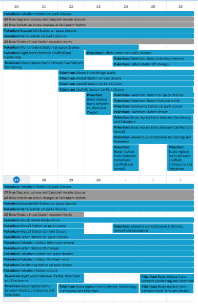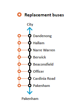 전체적으로 공사는 Pakenham과 Cranbourne에서 Caulfield까지 쭉 이어지는 공사였네요.
