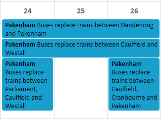 멜버른에서 기차를 타다 보면 기차 정비나 역 리모델링 등을 이유로 운행을 중지할 때가 있습니다. 지금도 Pakenham and Cranbourne 노선이 12월 2일까지 운행을 안 하는 것을 확인할 수 있죠. 그럼 이런 라인에 살고 있는 사람들은 어떻게 시티에 가야 할까요?