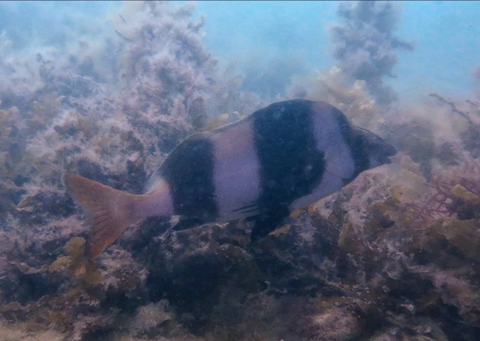 해변에서 가까운 Pier인데도 많은 물고기가 살고 있었다. 특히 Pier기둥은 부착생물들이 있고 주변에 물고기들의 서식지가 되고 있었다. 피어를 벗어나면 풀밭이 펼쳐져 있었지만 이 날은 너울이 심해서 멀미가 날 정도로 풀 속을 살펴보았지만 생물은 발견하지 못 하였다.