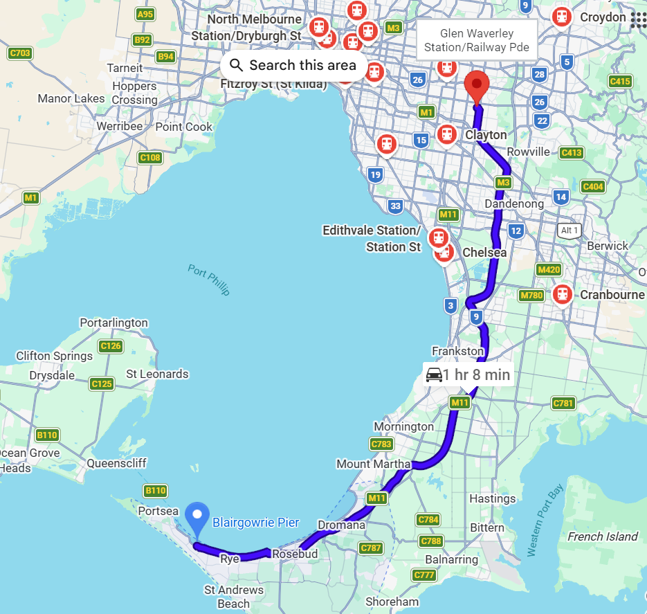 설날인 음력 1월 1일 아침에 약간의 바람이 불고 있었지만 날씨는 맑았다. 옆 동네인 Wantira South에 살고 있는 Alex 강사님을 따라서 Blairgowrie Pier로 다이빙을 갔는데 지난 번에 갔었던 Portsea Pier 근처이다. 집에서 한 시간 남짓 걸리는 거리인데 거리상으로는 꽤나 먼 편이다.