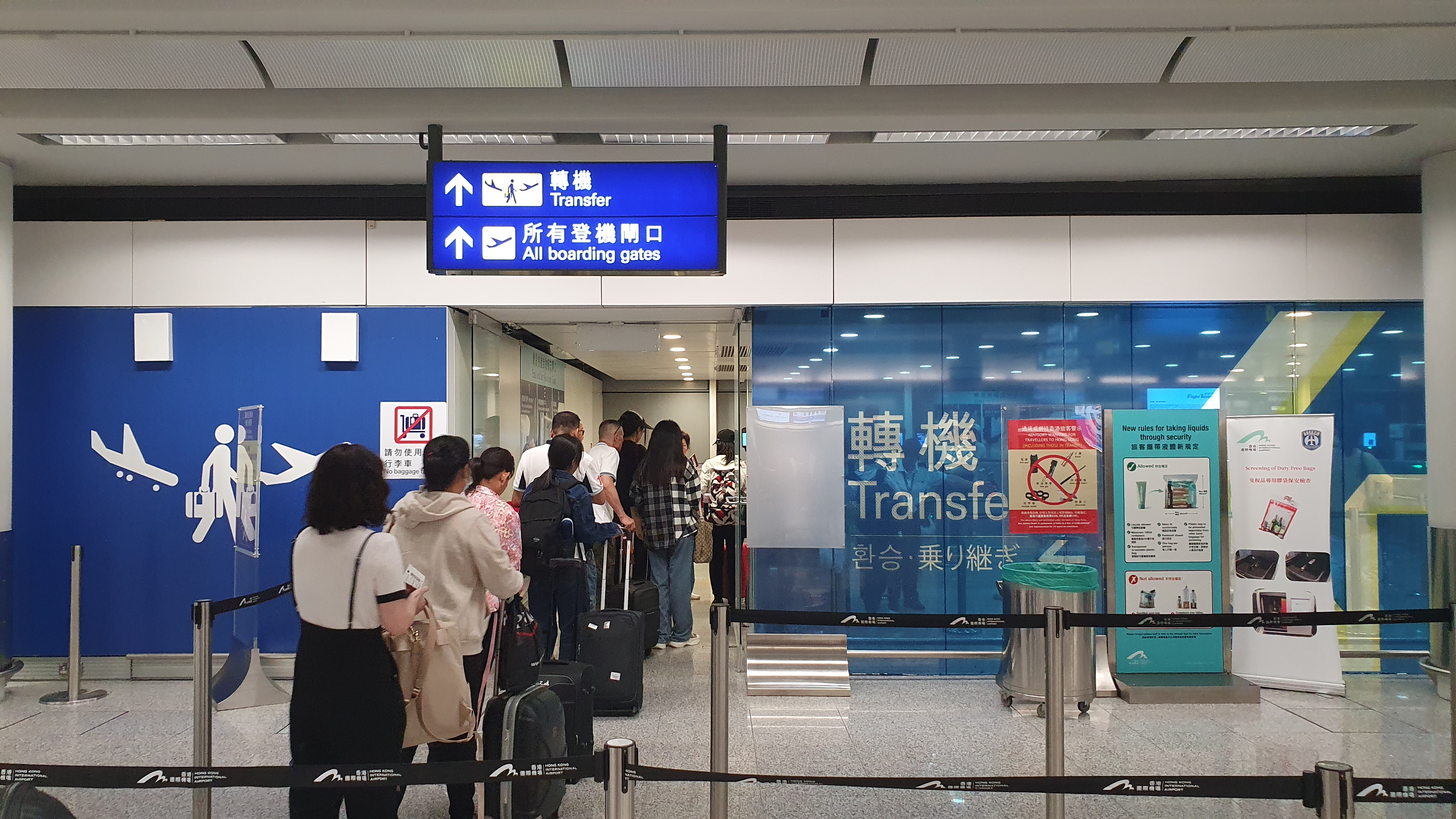 한국에서 출발하여 3시간 남짓 날아가니 홍콩에 도착하였어요. 캐세이퍼시픽 비행기는 아주 넓었고 개인 비디오가 있어서 영화두편 봤습니다. 이코노미가 비지니스석 같았네요. 우리 비행기는 1번 플랫폼에서 나를 내려주었어요. 이렇게 도착한 곳은 5층 ARRIVAL 대합실입니다. 게이트에서 바로 나오면 삼각형 모양의 대합실을 만나게 되는데요. 양쪽 귀퉁이에 transfer라는 표시가 있고 여기를 따라서 한 층을 더 올라가면 됩니다. 기내 수하물 xray 검사대를 통과해야 합니다.